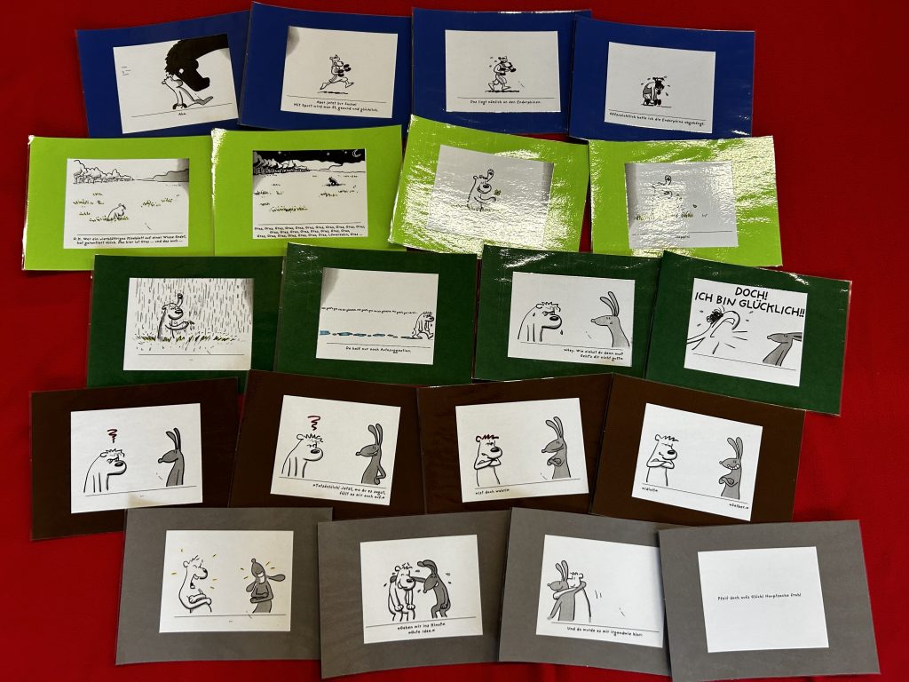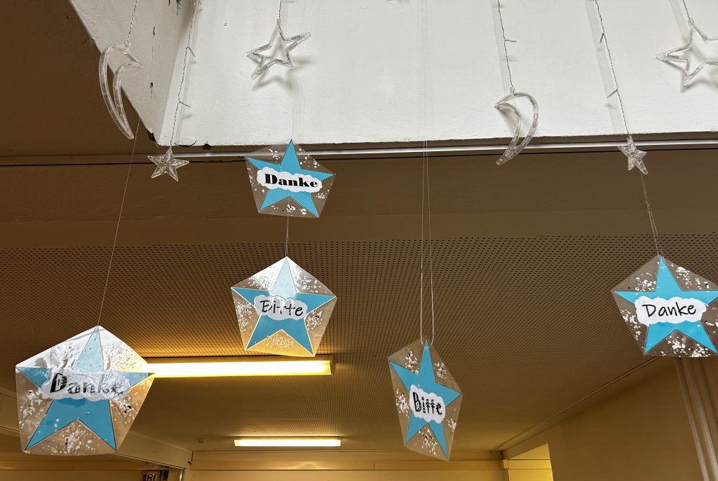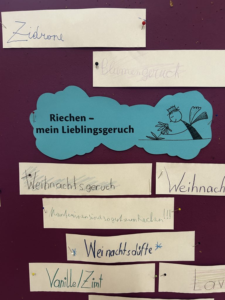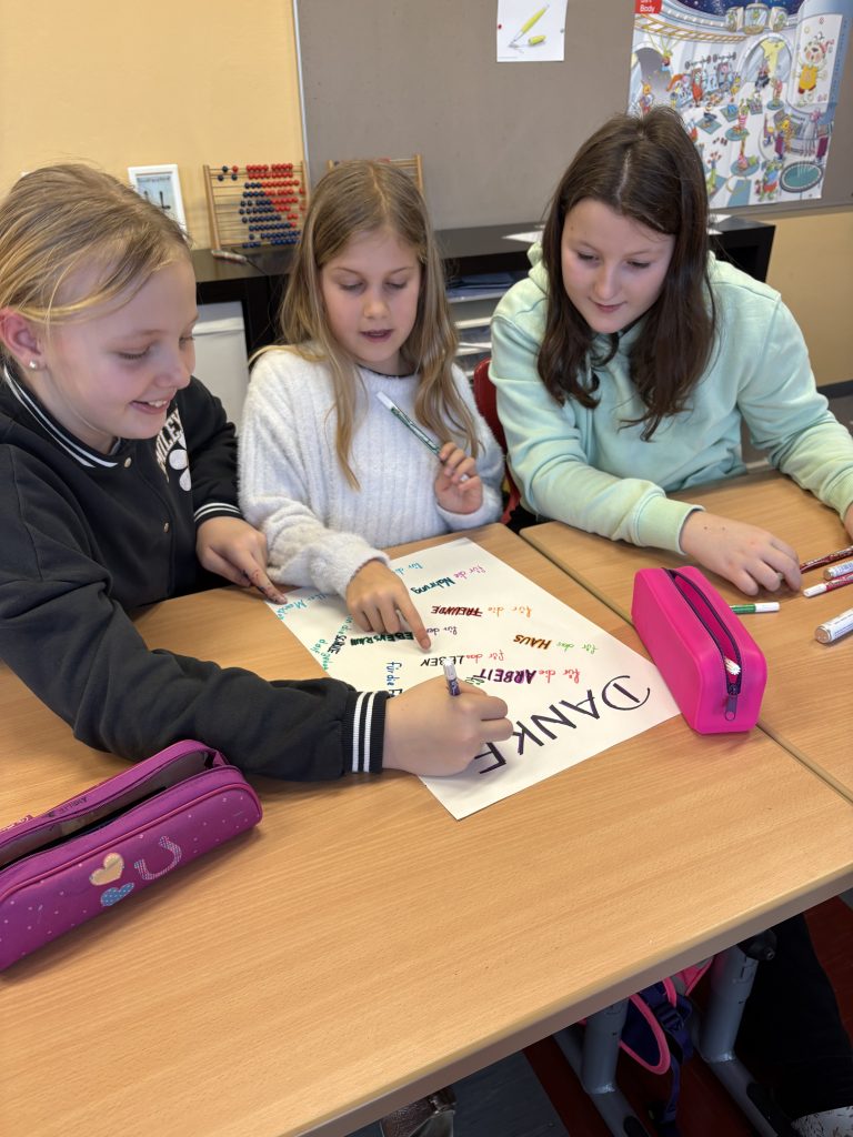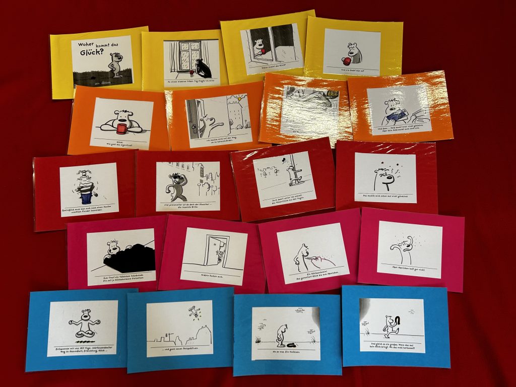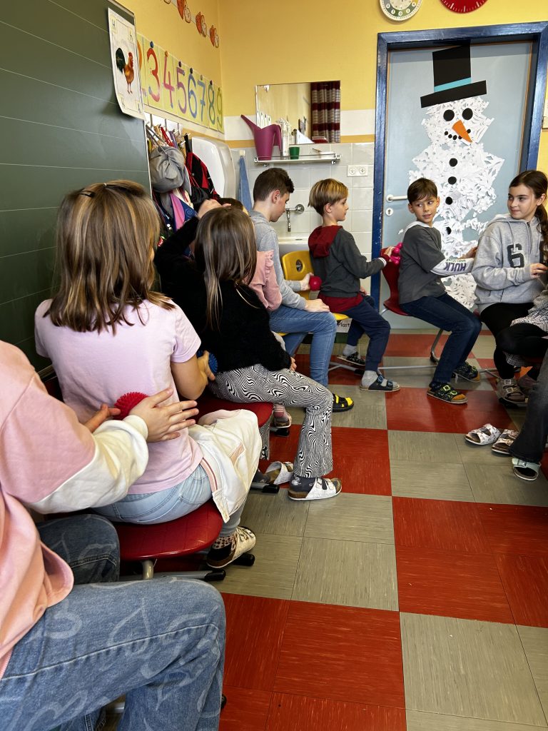 In der unverbindlichen Übung GLÜCK, die die Schülerinnen und Schüler der 4. Klassen wählen können, wird mit Igelbällen massiert, über „Glück haben“ und „glücklich sein“ philosophiert, werden Fantasiereisen durchgeführt, und Bücher und Geschichten zum Thema vorgelesen. Auch präsentieren wir unsere Gedanken immer wieder an einer Pinnwand und gestalten auch Dekorationen mit Botschaften im Schulhaus.