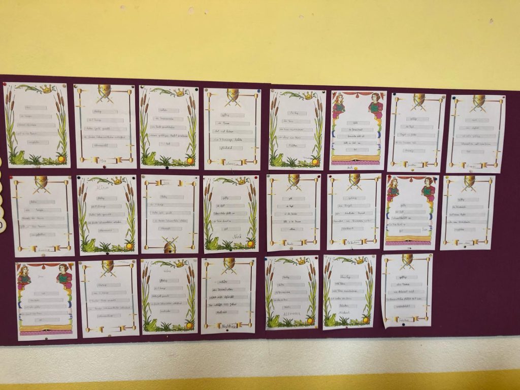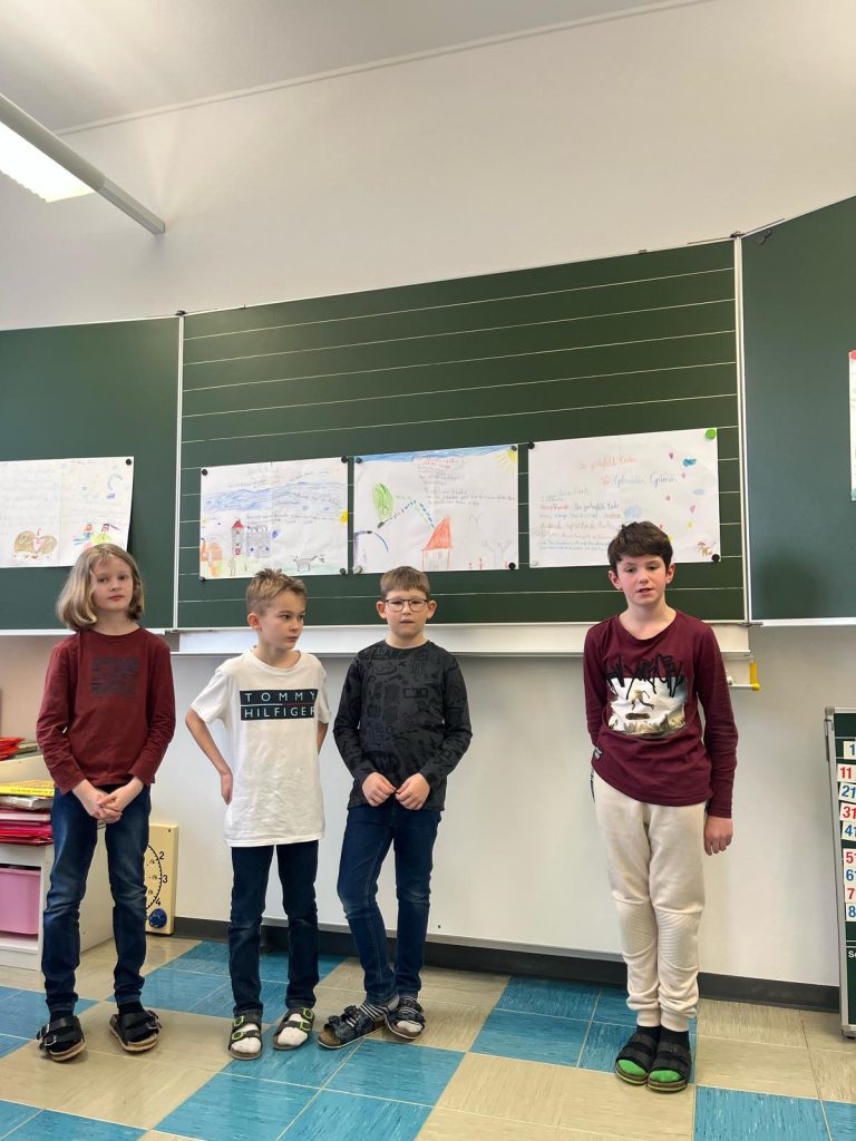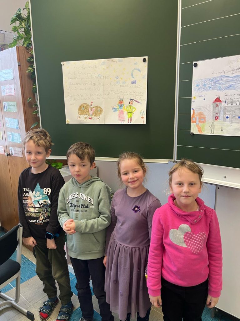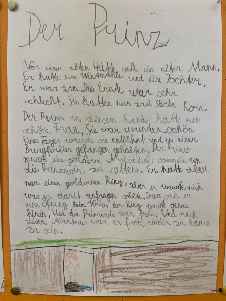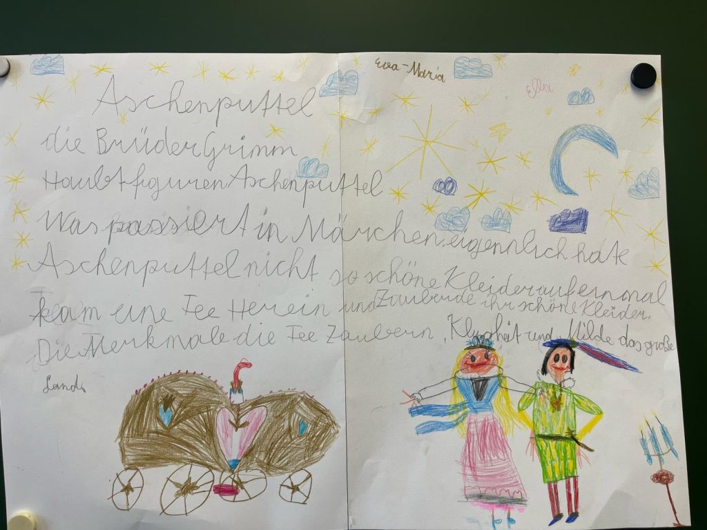Die Schülerinnen und Schüler der beiden zweiten Klassen nahmen an der Projektwoche zum Thema Märchen teil. Der Stundenplan wurde in dieser Woche aufgehoben, um eine fächerübergreifende Auseinandersetzung mit dem Thema zu ermöglichen. So durften die Kinder in unterschiedlichen Büchern lesen, zur Musik von Peter und der Wolf malen, Geschichten der Brüder Grimm erzählen, eigene Märchen verfassen, Gedichte schreiben und Referate präsentieren.