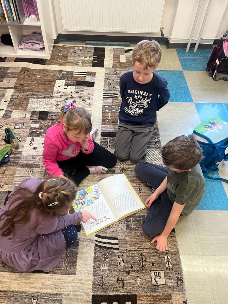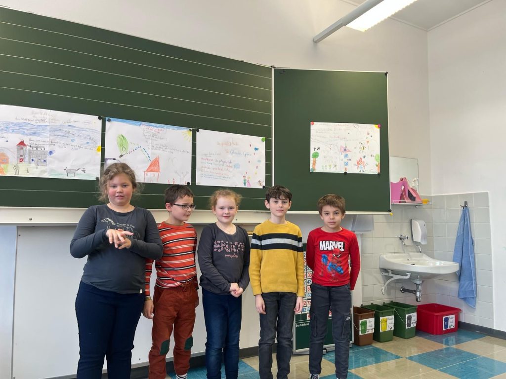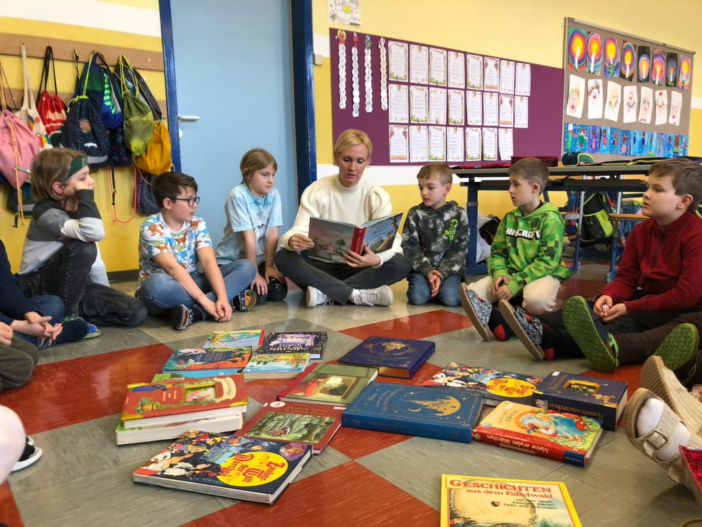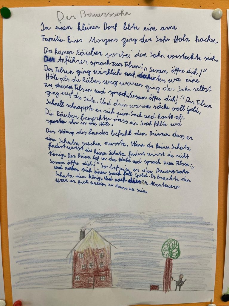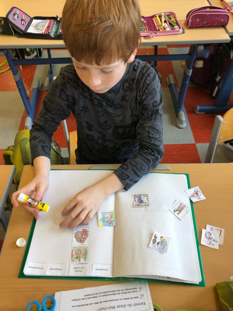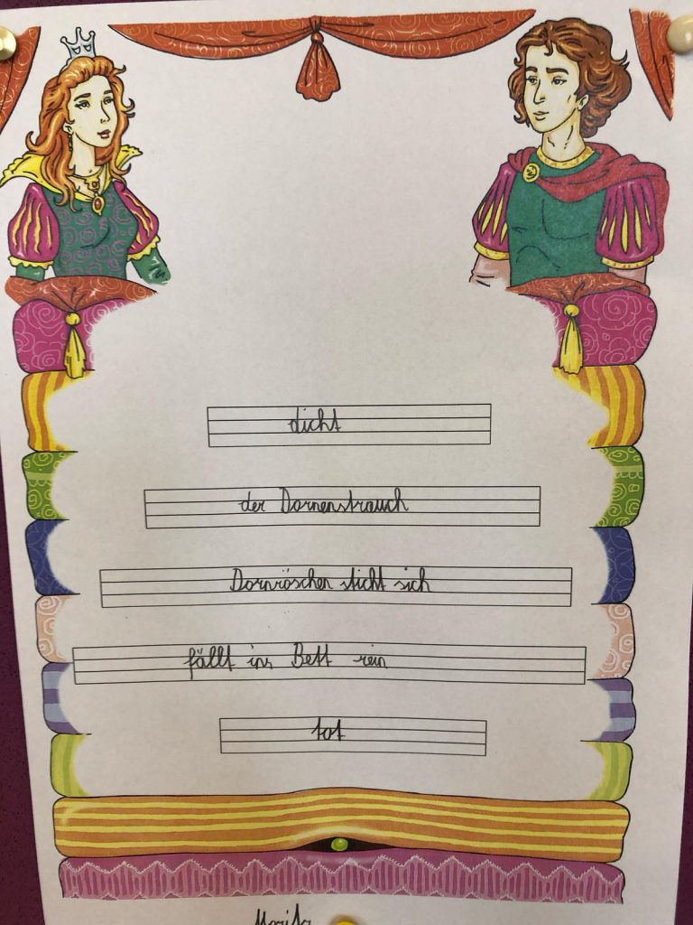 Die Schülerinnen und Schüler der beiden zweiten Klassen nahmen an der Projektwoche zum Thema Märchen teil. Der Stundenplan wurde in dieser Woche aufgehoben, um eine fächerübergreifende Auseinandersetzung mit dem Thema zu ermöglichen. So durften die Kinder in unterschiedlichen Büchern lesen, zur Musik von Peter und der Wolf malen, Geschichten der Brüder Grimm erzählen, eigene Märchen verfassen, Gedichte schreiben und Referate präsentieren.