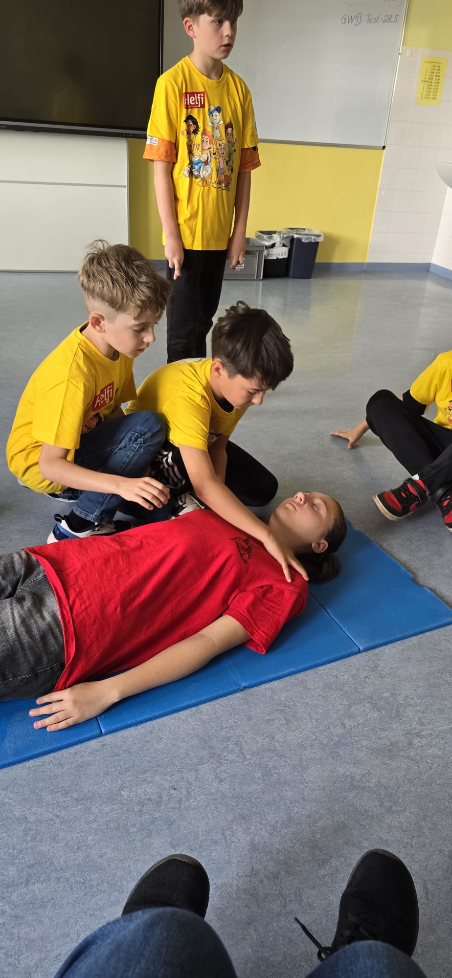 Beim alljährlichen Helfi- Fest in der Musikmittelschule Edelschrott drehte sich alles um Erste Hilfe. In theoretischen und praktischen Stationen durften die Kinder zeigen, was sie schon alles können! Vom Absetzen des Notrufes über das Anlegen eines Druckverbandes bis hin zur Stabilen Seitenlage und zur Besichtigung eines echten Rettungsautos war alles dabei.