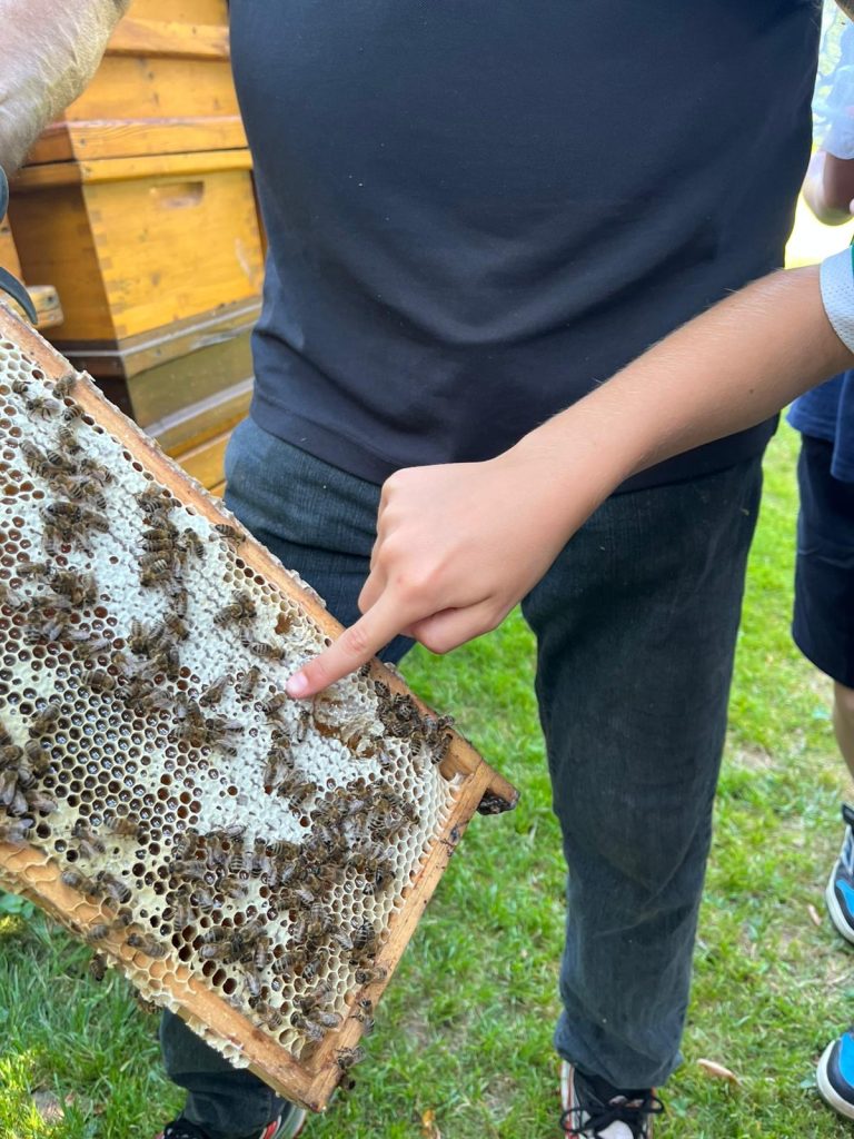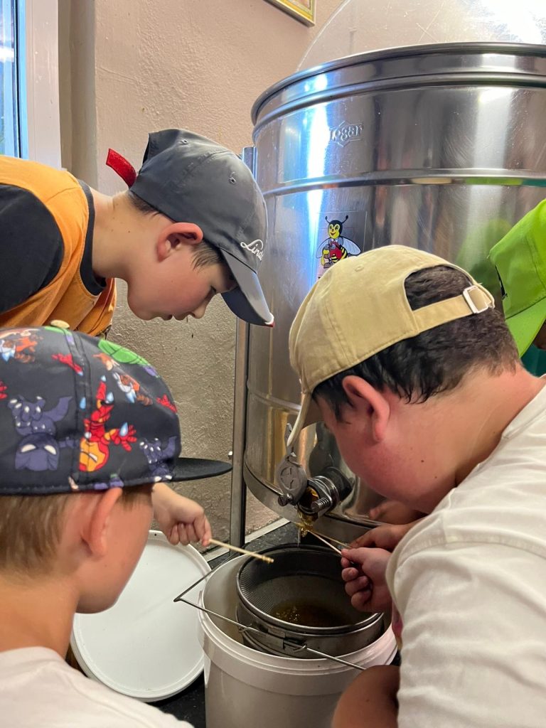 Die Schülerinnen und Schüler der beiden zweiten Klassen besuchten im Rahmen des Wandertages die Imkerei Gößler am Steinberg. Herr Gößler zeigte uns seine Bienenstöcke, während Frau Gößler das Ernten des Honigs aus den Waben und das Schleudern demonstrierte. Anschließend durften die Kinder die verschiedenen Honigsorten verkosten.
