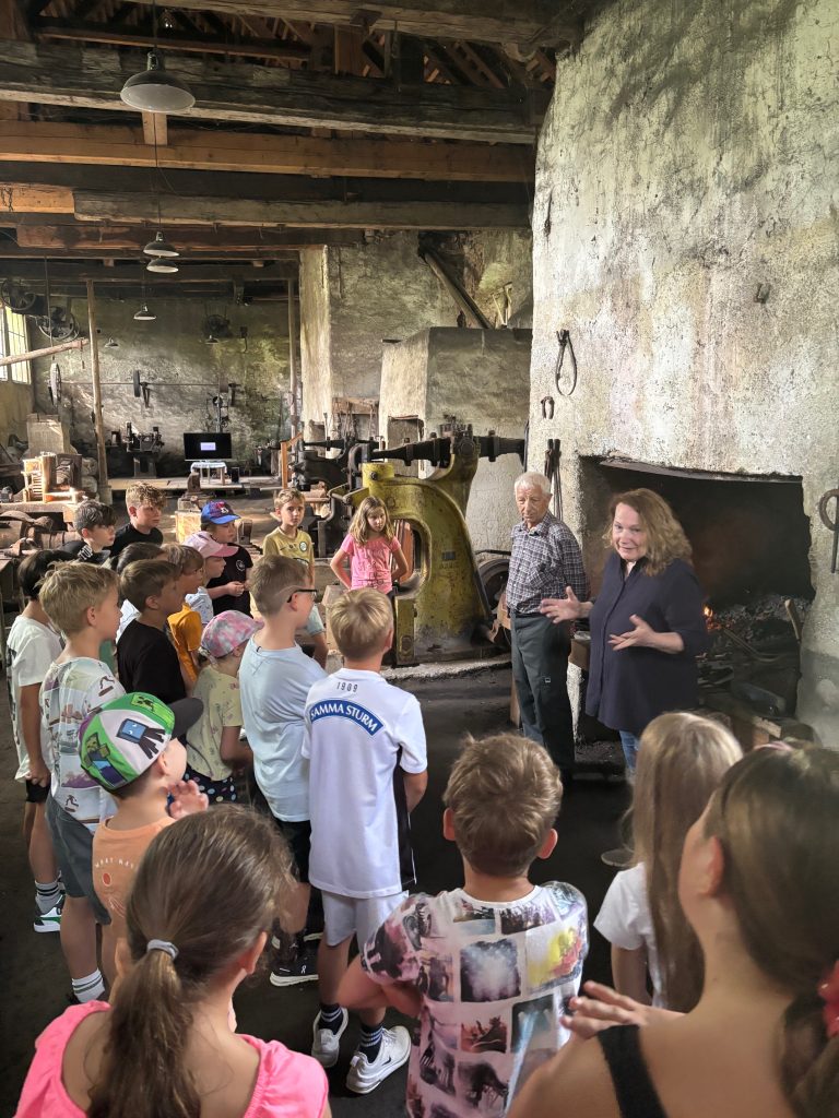 Die Schülerinnen und Schüler der 3. Klassen besuchten das Hammerwerk Roob und erfuhren dabei viel Wissenswertes über das Handwerk in Ligist.