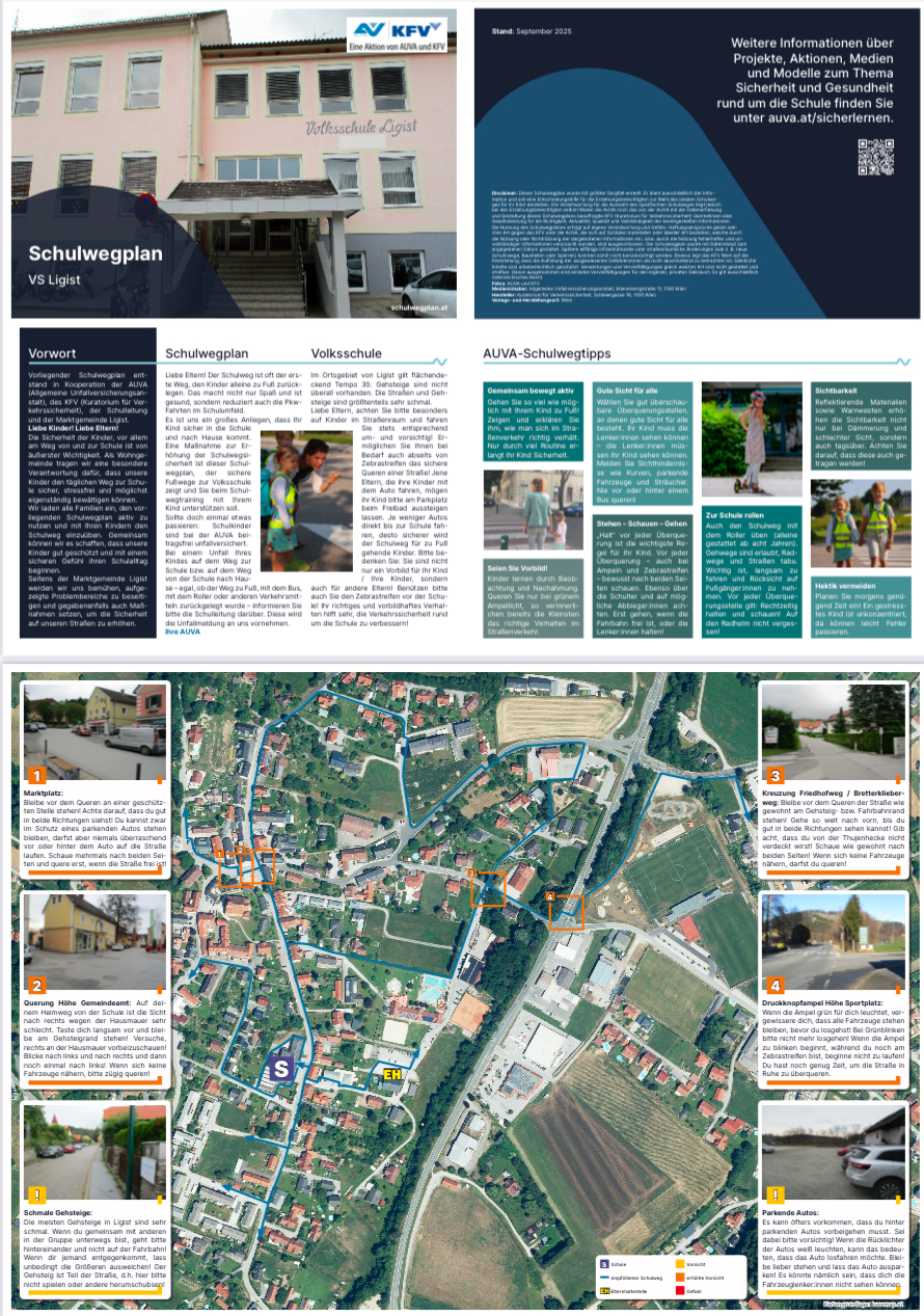 In den letzten beiden Jahren haben sich Schule und Gemeinde in Zusammenarbeit mit der AUVA und KFV mit dem Schulweg unserer Schülerinnen und Schüler beschäftigt. Ziel war und ist es, die Kinder und auch Eltern auf Gefahrenquellen im weiteren Umkreis unserer Schule hinzuweisen.