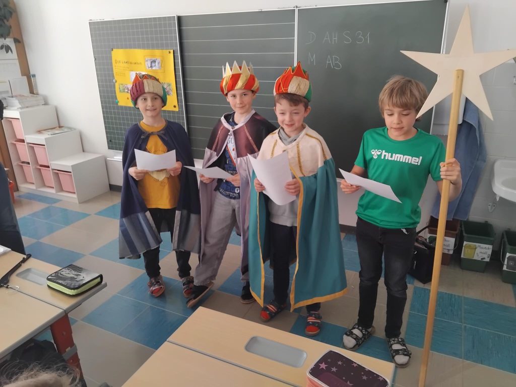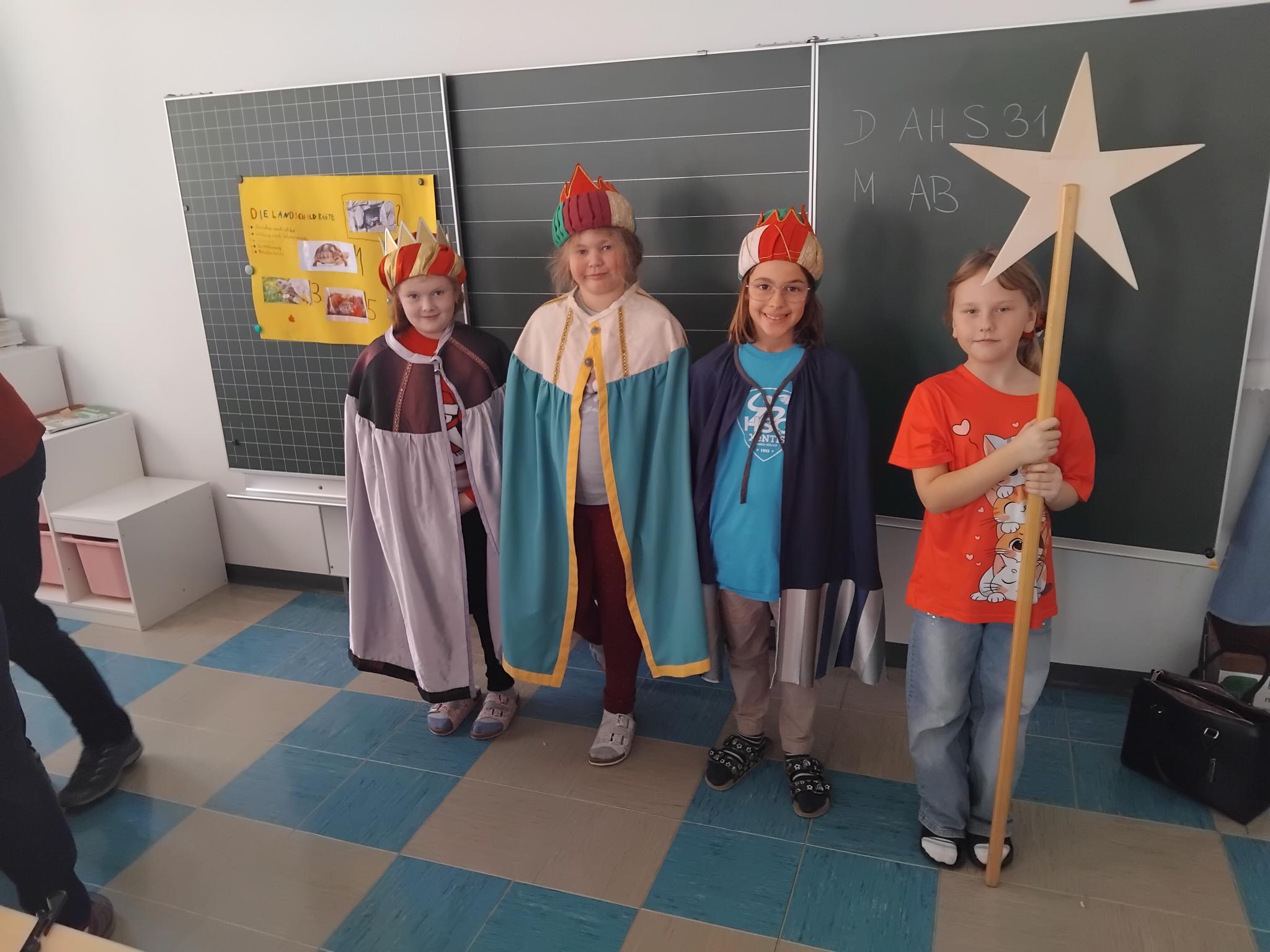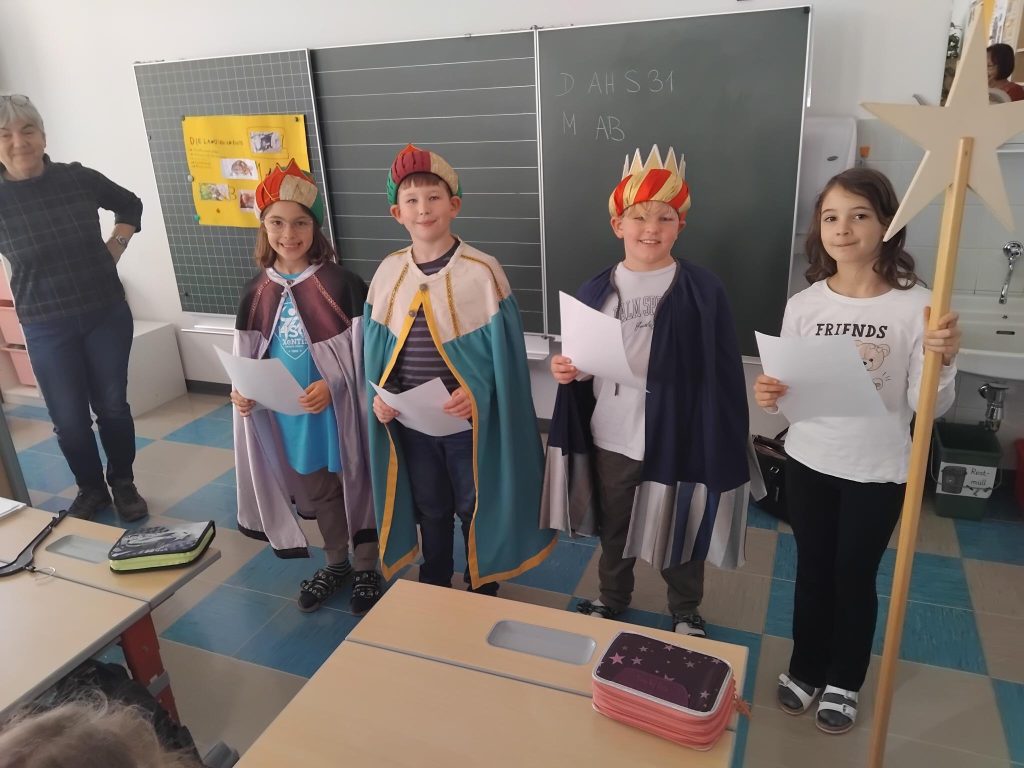 Auch dieses Jahr besuchten Frau Moitz und FrauJeszenszky die dritten Klassen, um den Schülerinnen und Schülern von der Sternsingeraktion zu erzählen. Die dritten Klassen durften sich als Stern oder Königin/König verkleiden, die Sprüche aufsagen und lernten viel über die Sternsingeraktion. Danke für den Besuch!